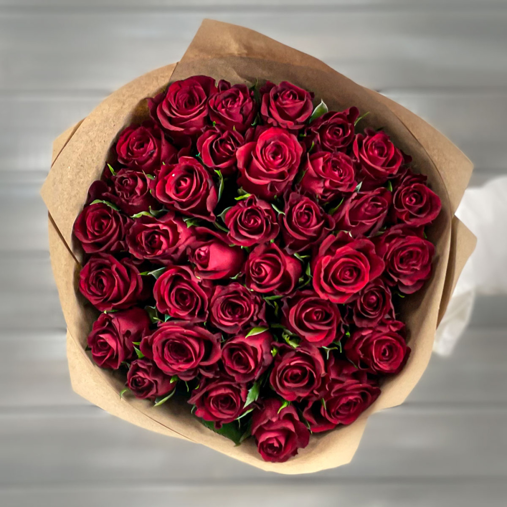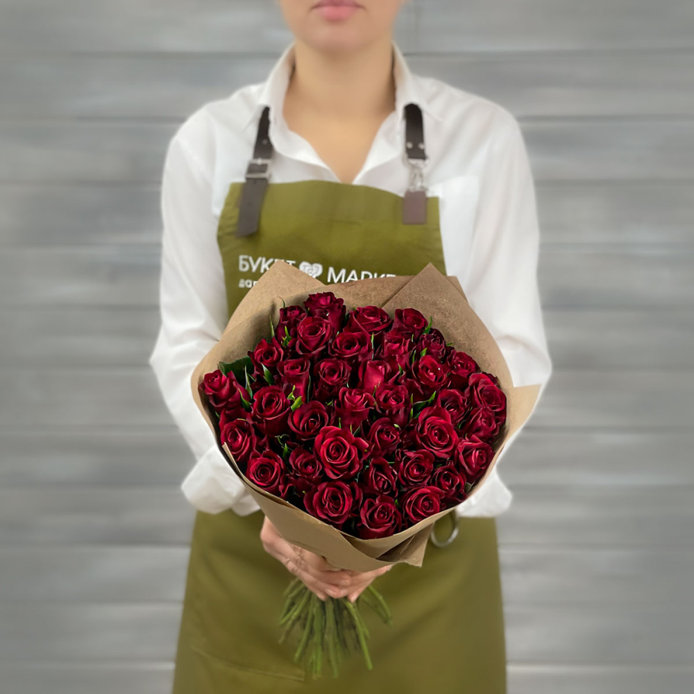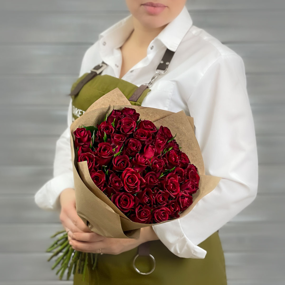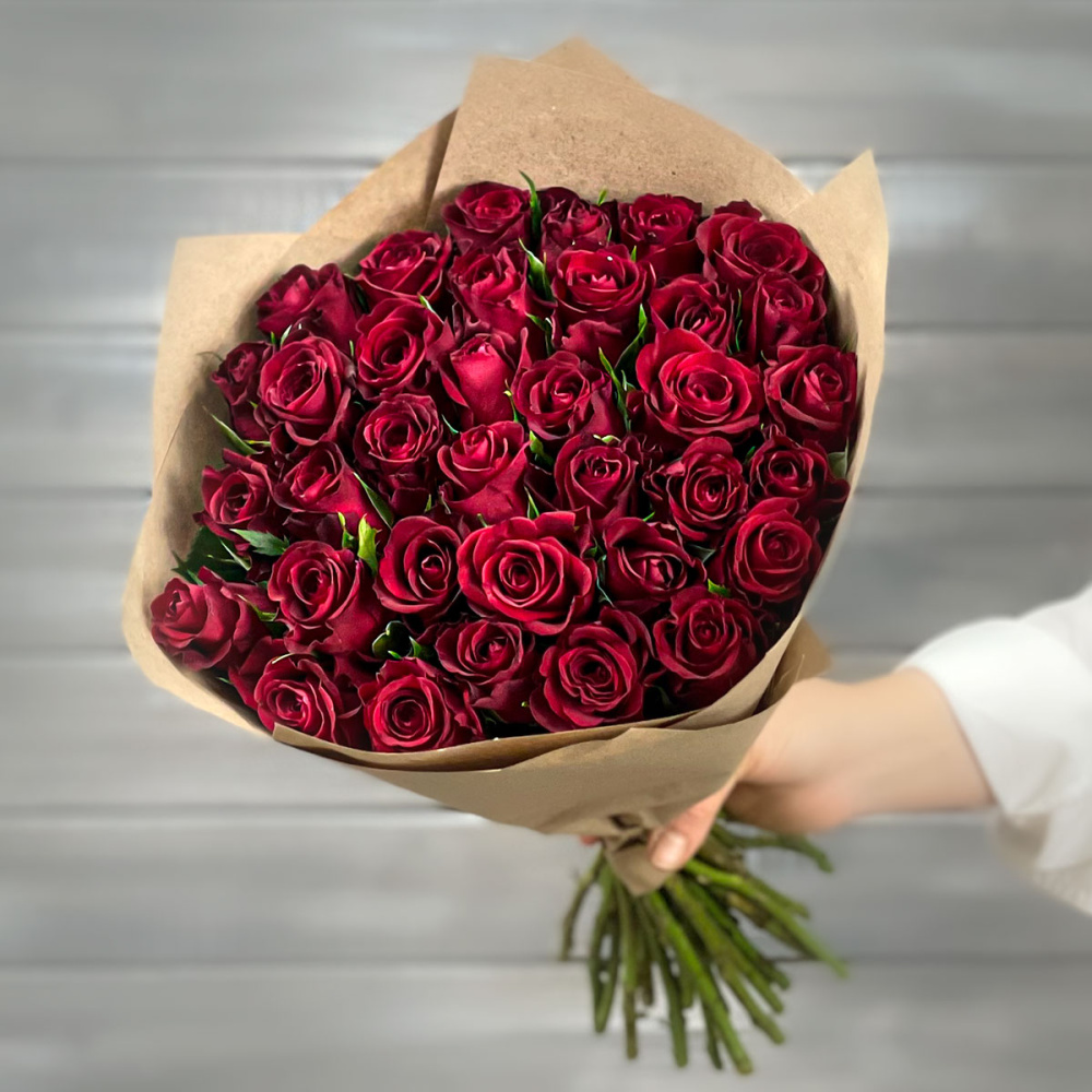 Роза 40 см,Бумага упаковочная Крафт,Лента,Плёнка прозрачная