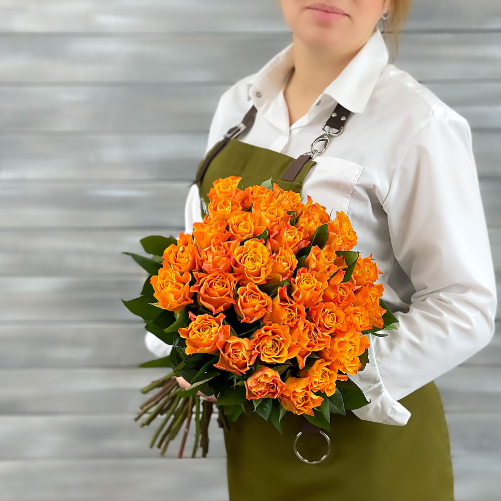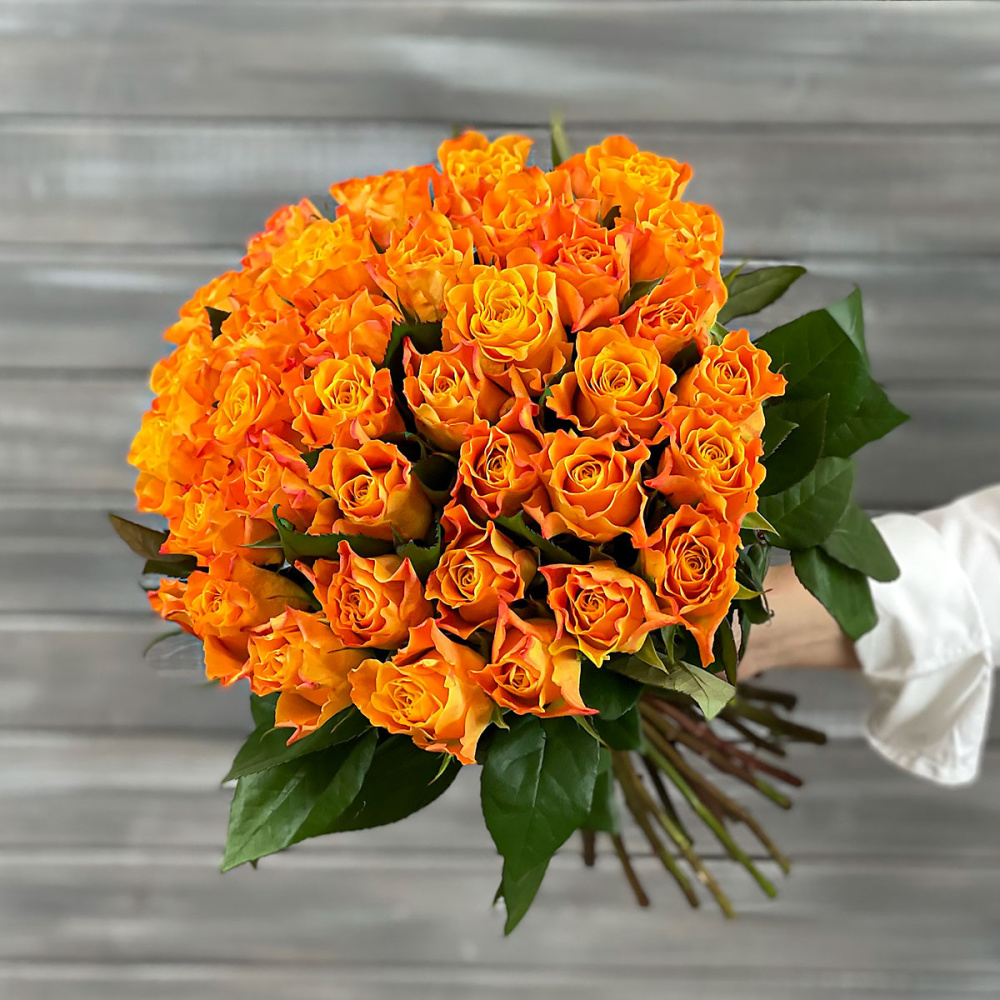 Букет из 39 оранжевых роз с лентой Кения 40 см.