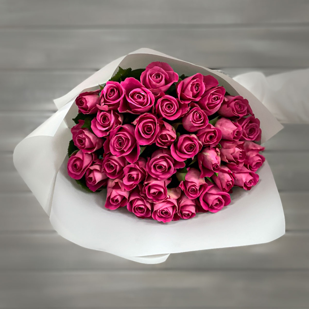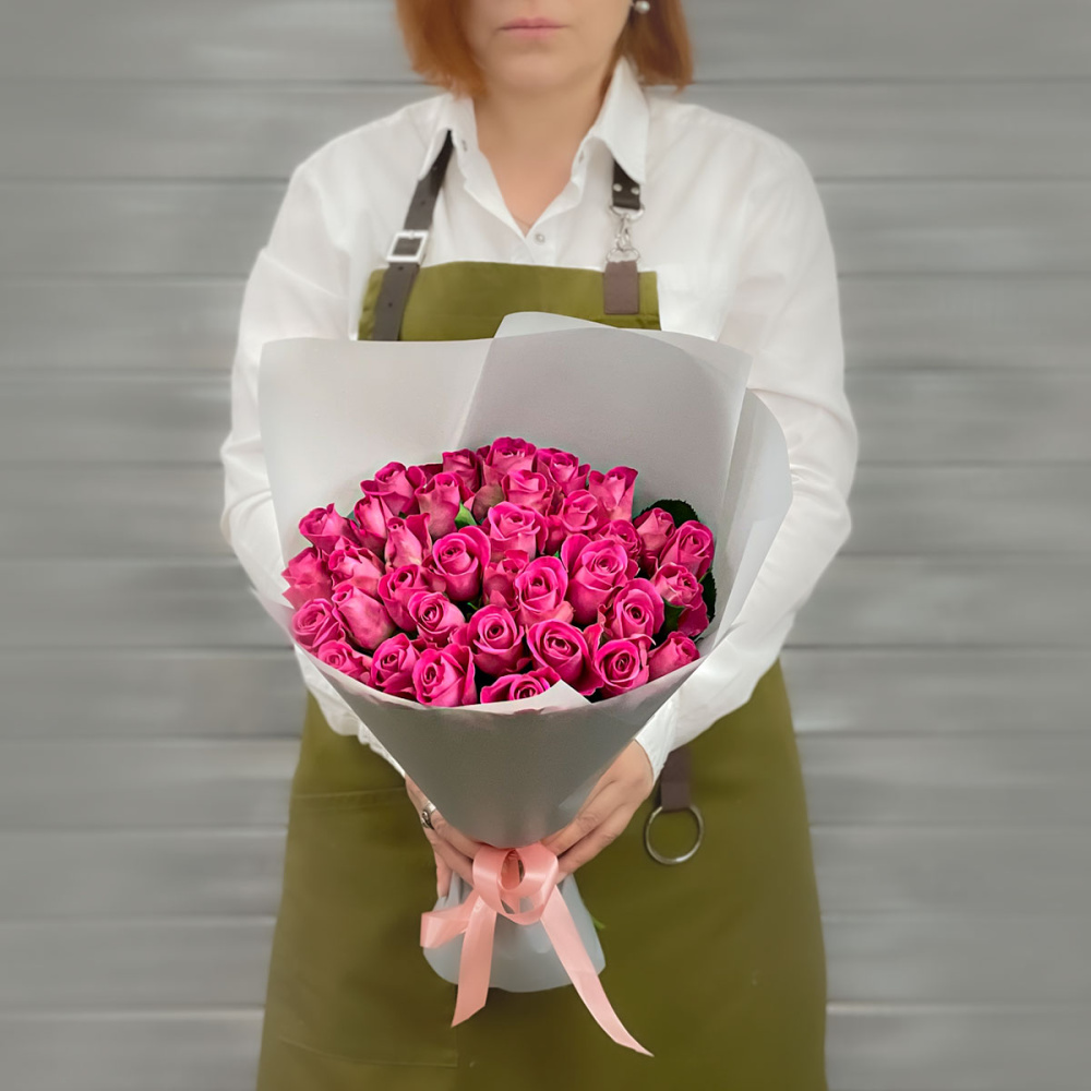 Букет из 39 розовых роз в упаковке Кения 40 см.