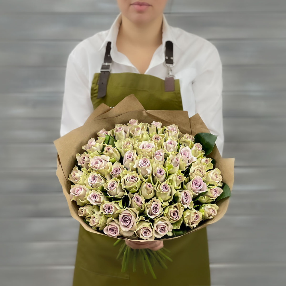 Букет из 39 сиреневых роз в крафте Кения 40 см.