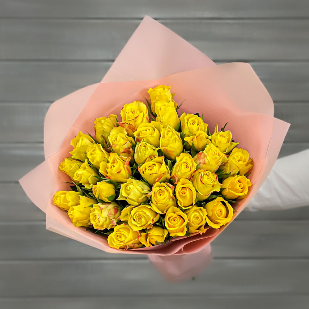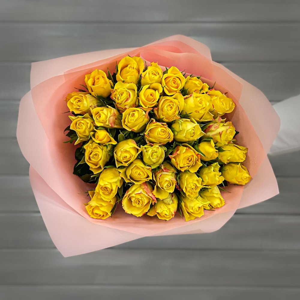 Букет из 39 желтых роз в упаковке Кения 40 см.