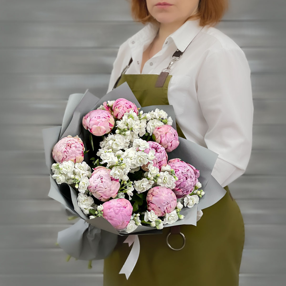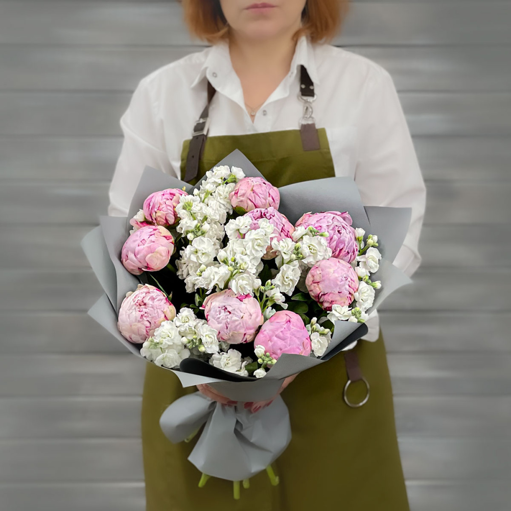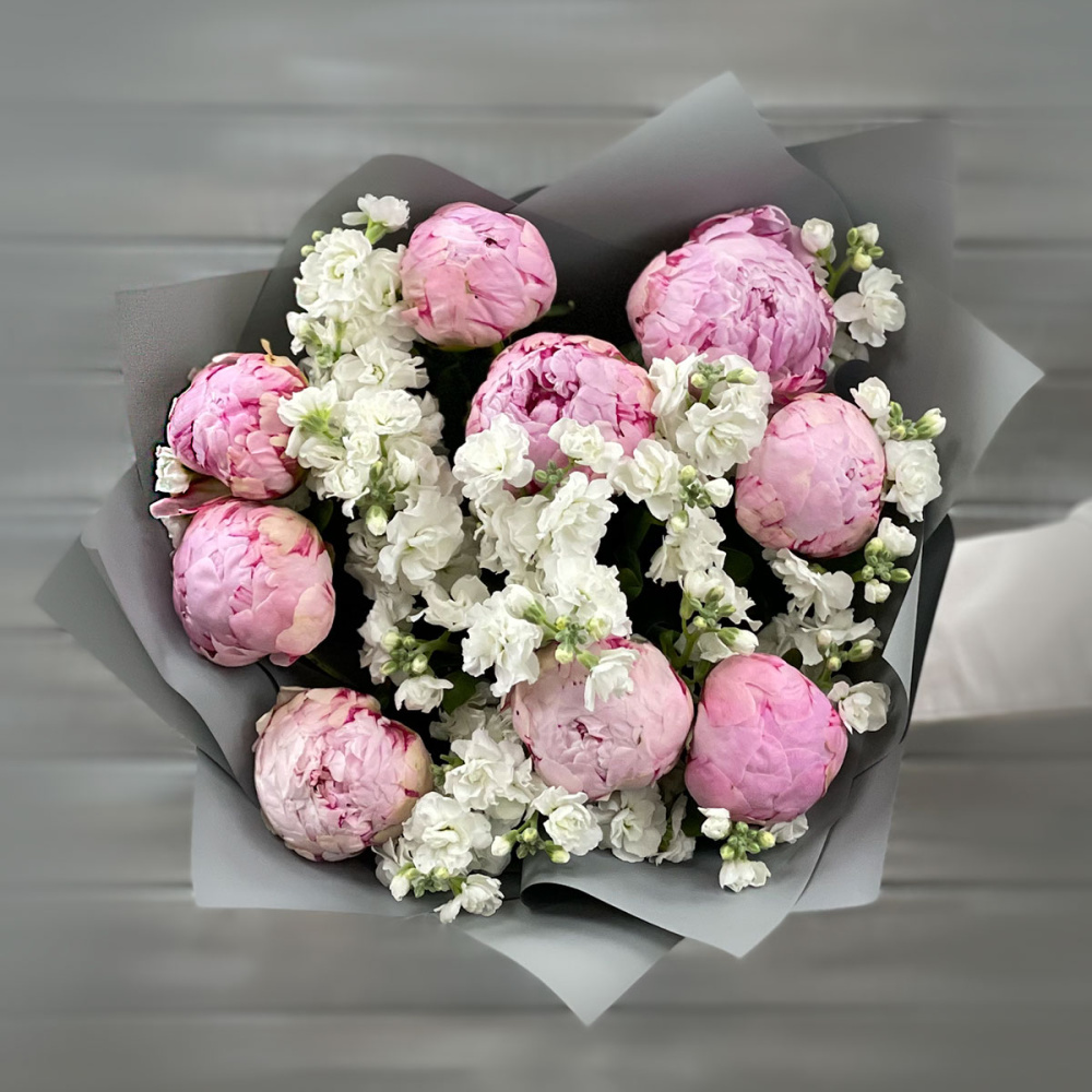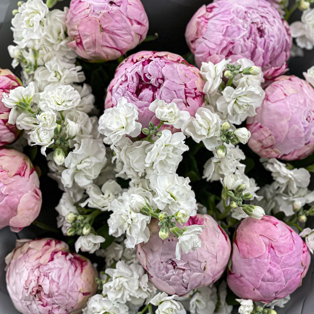 Маттиола кустовая ,Пион высший сорт,Листья фисташки,Лента,Упаковка в ассортименте,Плёнка прозрачная