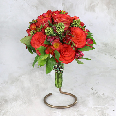 Букет невесты из алых роз, фрезии и альстромерии| 7 300 Р | без скидки |
