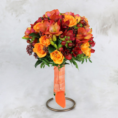 Букет невесты из оранжевых роз, фрезий и альстромерий| 7 200 Р | без скидки |