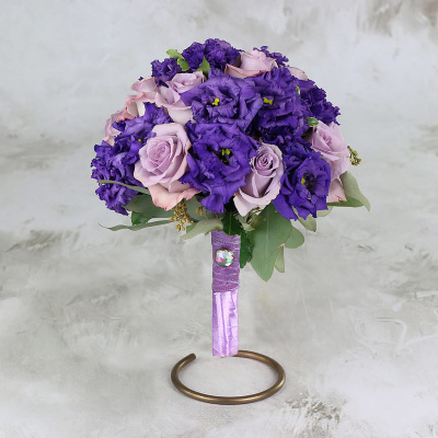 Фиолетово-сиреневый букет невесты из роз и лизиантуса| 14 600 Р | без скидки |