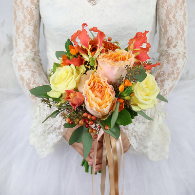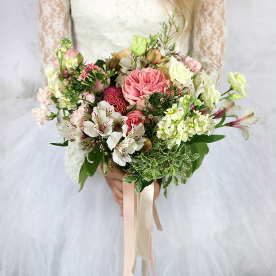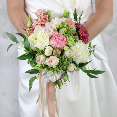 Букет невесты из роз, целозии и пионов| 10 100 Р | без скидки |