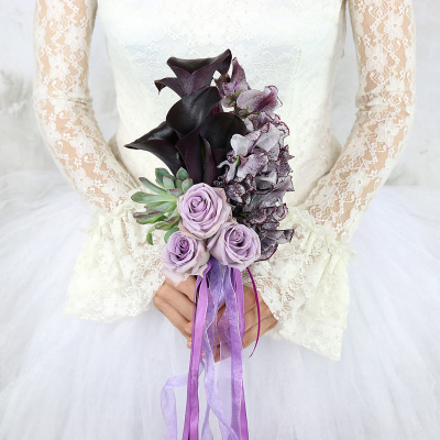 Калла 60 см белая, Роза Оушен сонг 40 см - 50 см, Латирус фиолетовый, Эхеверия, Лента, Плёнка прозрачная