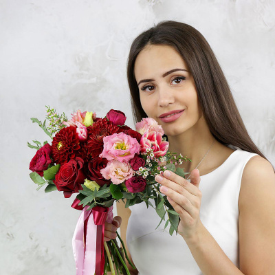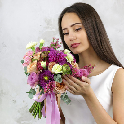 Букет невесты из георгин, роз, гвоздик и фрезии| 9 300 Р | без скидки |