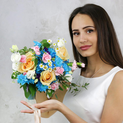 Букет невесты из роз, гвоздик и ромашки| 6 300 Р | без скидки |