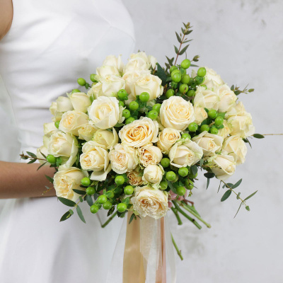 Букет невесты из роз, гиперикума и эвкалипта| 7 500 Р | без скидки |