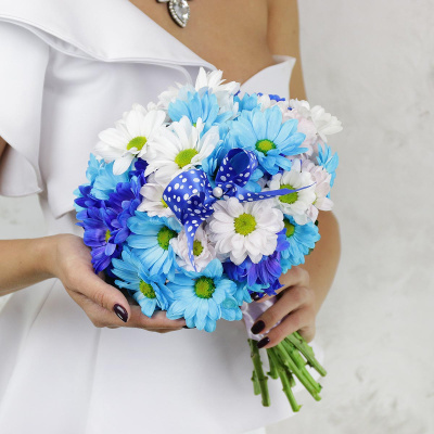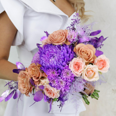 Букет невесты из хризантемы, роз, альстромерий и дельфиниума| 7 200 Р | без скидки |