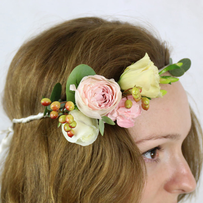 Свадебный венок из лизиантуса, фрезии и кустовых роз| 3 800 Р | без скидки |
