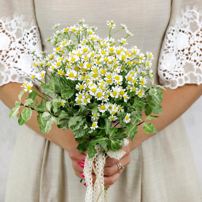 Ромашка (Танасетум), Листья питтоспорума микс, Кружево (за1м), Лента, Плёнка прозрачная