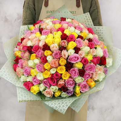 Букет из 151 разноцветных роз Кения 40 см.| 13 700 Р | без скидки |