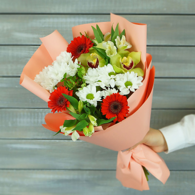 Букет из хризантем, гербер и альстромерий| 4 300 Р | без скидки |