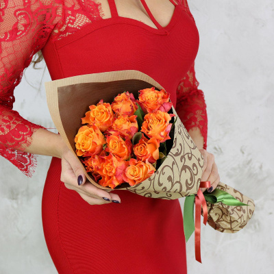 Букет из 11 оранжевых роз в подарочной упаковке Кения 40 см.| 1 700 Р | без скидки |