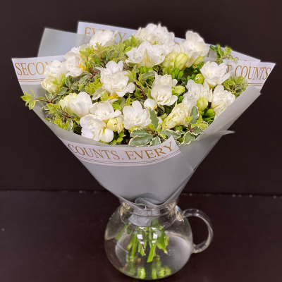 Букет из фрезий в стильной упаковке| 5 700 Р | без скидки |