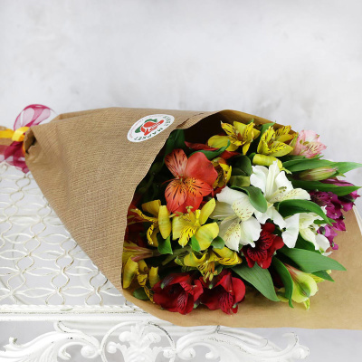 Букет из 7 разноцветных альстромерий в крафте| 2 800 Р | без скидки |
