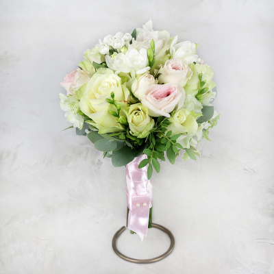 Букет невесты из роз, фрезии и лизиантуса| 6 500 Р | без скидки |