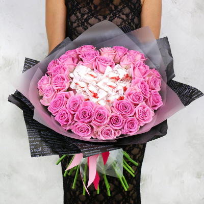 Букет из розовых роз с Раффаэлло Россия 60 см.| 6 300 Р | без скидки |