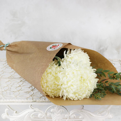 Букет из хризантем и эвкалипта в крафте| 2 200 Р | без скидки |