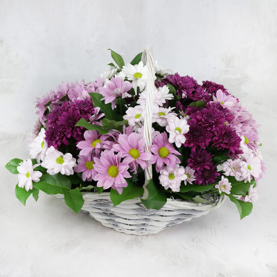 Композиция из разноцветных кустовых хризантем в корзине| 9 700 Р | без скидки |