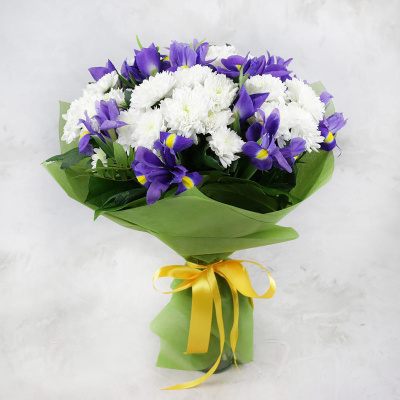 Букет из ирисов и кустовых хризантем в фетре| 4 900 Р | без скидки |