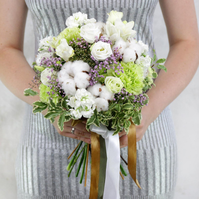 Букет из гортензии, роз и хлопка| 32 700 Р | без скидки |