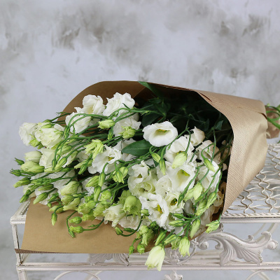 Букет из 9 белых лизиантусов в крафте| 5 500 Р | без скидки |