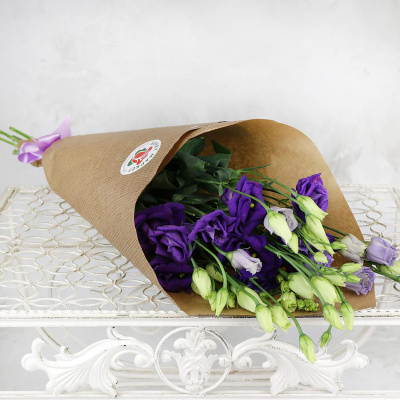 Букет из 15 фиолетовых лизиантусов в крафте| 7 600 Р | без скидки |