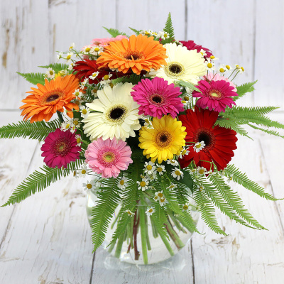 Яркий букет из хризантемы, ромашки и герберы| 5 600 Р | без скидки |