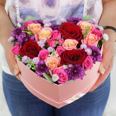 Композиция из роз, хризантем и астр в сердце| 6 200 Р | без скидки |