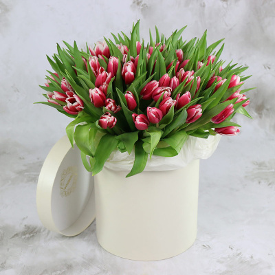101 красно-белый тюльпан в шляпной коробке| 20 800 Р | без скидки |