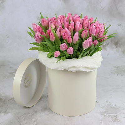 101 розовый тюльпан в шляпной коробке| 27 000 Р | без скидки |