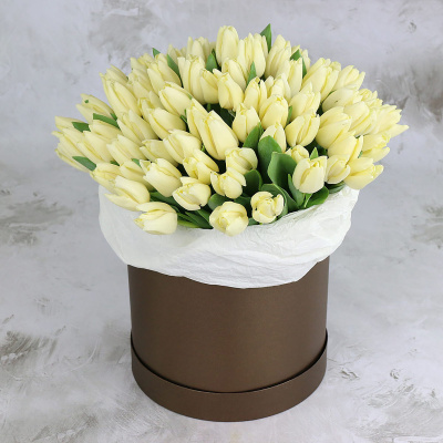 101 белый тюльпан в шляпной коробке| 31 700 Р | без скидки |