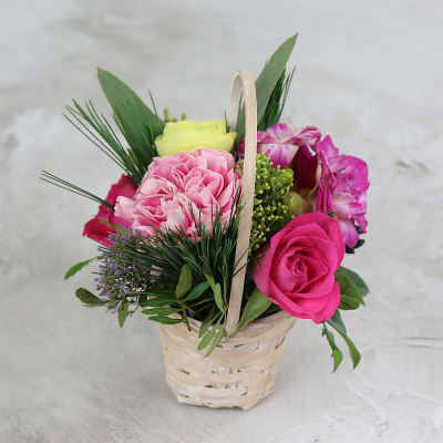 Мини-корзина с ранункулюсом, фрезией и гвоздикой| 2 600 Р | без скидки |