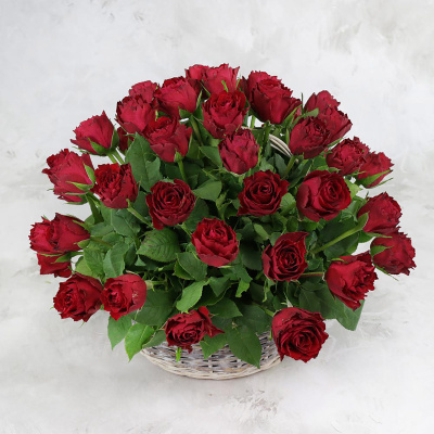 51 красная роза в плетёной корзине, Кения| 6 800 Р | без скидки |