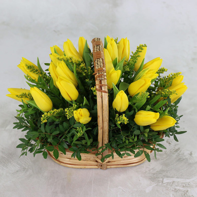 25 желтых тюльпанов в корзине| 8 700 Р | без скидки |