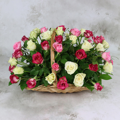 51 белая и розовая роза в корзине, Кения| 7 500 Р | без скидки |