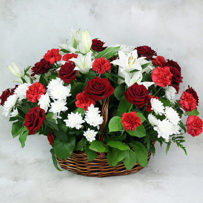Траурная корзина. Розы, лилия, гвоздика и хризантема| 20 100 Р | без скидки |