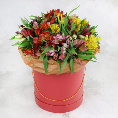 25 разноцветных альстромерий в шляпной коробке| 10 500 Р | без скидки |