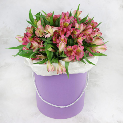 25 розовых альстромерий в шляпной коробке| 10 500 Р | без скидки |