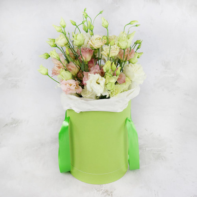 Лизиантус, Лизиантус, Коробка шляпная малая, Комплект аквабокс, Бумага упаковочная Тишью, Лента, Плёнка прозрачная
