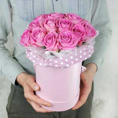 Композиция в шляпной коробке из 15 розовых роз, Россия| 4 600 Р | без скидки |