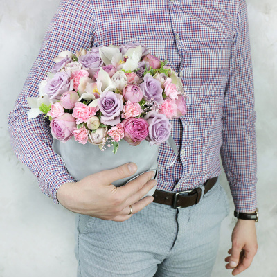 Композиция из орхидеи и роз в шляпной коробке| 11 100 Р | без скидки |