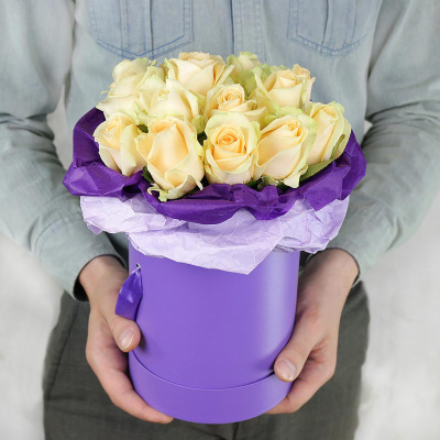 Композиция в шляпной коробке из 15 кремовых роз, Россия| 4 800 Р | без скидки |