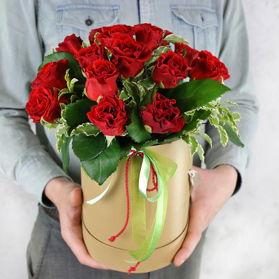 Композиция в шляпной коробке из 15 красных роз| 4 900 Р | без скидки |