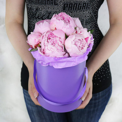 Композиция из розовых пионов в шляпной коробке| 15 500 Р | без скидки |