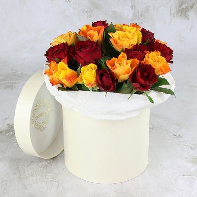 25 желтых и красных роз в шляпной коробке, Кения| 4 800 Р | без скидки |