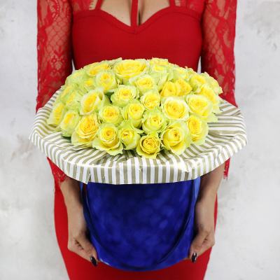 Букет из 51 желтых роз в шляпной коробке, Россия| 11 200 Р | без скидки |